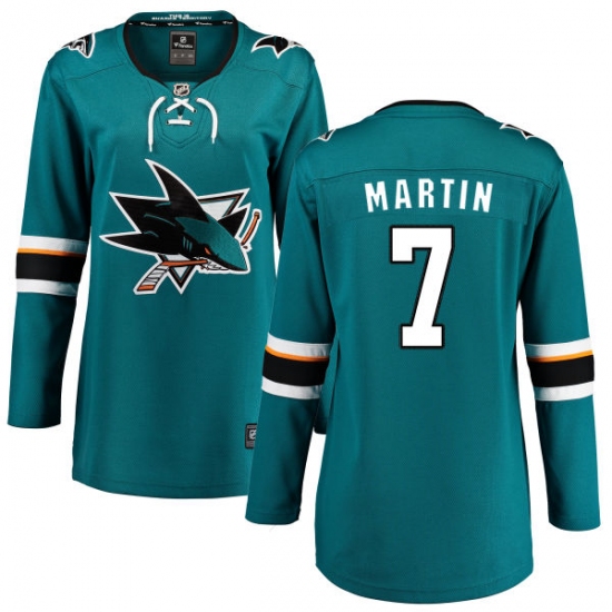 Home>NHL>San Jose Sharks>Paul Martin>Women's San Jose Sharks #7 Paul Martin Fanatics Branded Teal Green Home Breakaway NHL Jersey