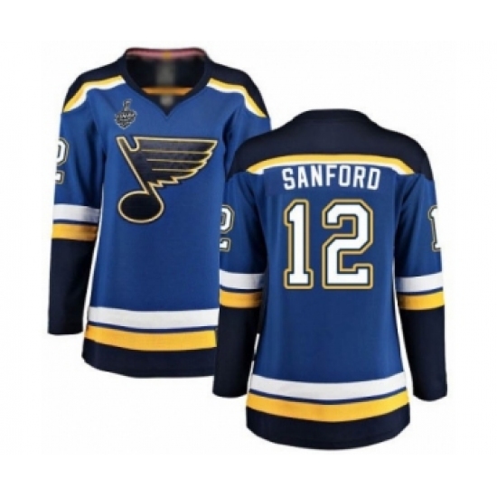 Women's St. Louis Blues #12 Zach Sanford Authentic Royal Blue Home 2019 Stanley Cup Final Bound Hockey Jersey