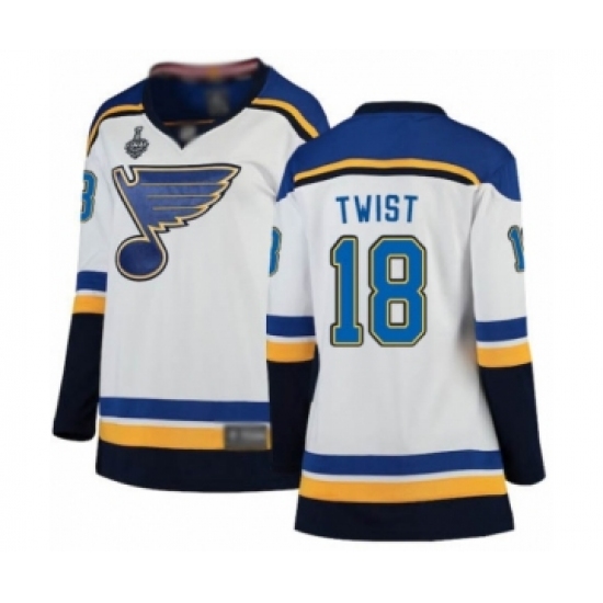 Women's St. Louis Blues #18 Tony Twist Fanatics Branded White Away Breakaway 2019 Stanley Cup Final Bound Hockey Jersey
