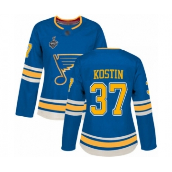 Women's St. Louis Blues #37 Klim Kostin Authentic Navy Blue Alternate 2019 Stanley Cup Final Bound Hockey Jersey