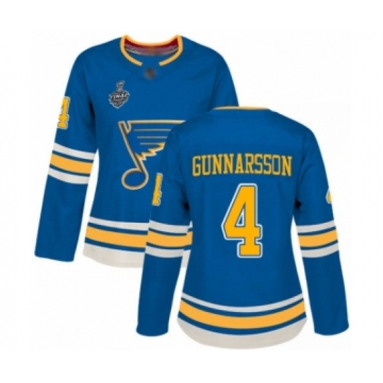 >Women's St. Louis Blues #4 Carl Gunnarsson Authentic Navy Blue Alternate 2019 Stanley Cup Final Bound Hockey Jersey