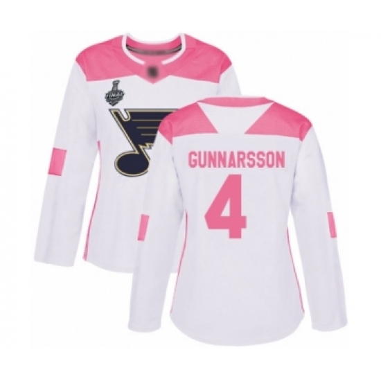 Women's St. Louis Blues #4 Carl Gunnarsson Authentic White Pink Fashion 2019 Stanley Cup Final Bound Hockey Jersey