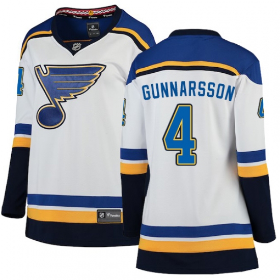 >Women's St. Louis Blues #4 Carl Gunnarsson Fanatics Branded White Away Breakaway NHL Jersey