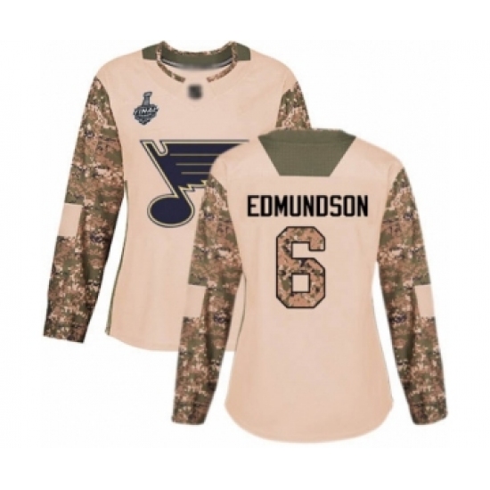 Women's St. Louis Blues #6 Joel Edmundson Authentic Camo Veterans Day Practice 2019 Stanley Cup Final Bound Hockey Jersey