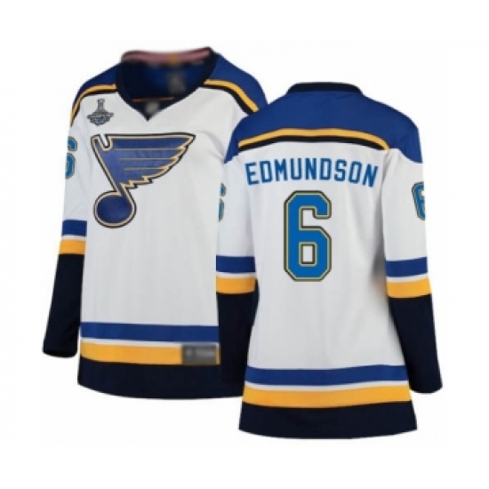 Women's St. Louis Blues #6 Joel Edmundson Fanatics Branded White Away Breakaway 2019 Stanley Cup Champions Hockey Jersey