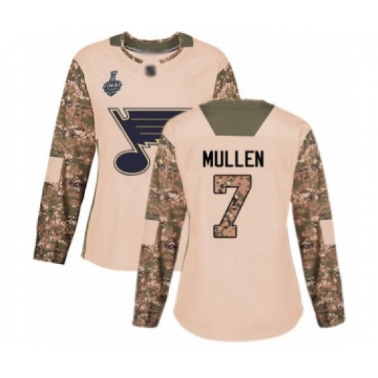 Women's St. Louis Blues #7 Joe Mullen Authentic Camo Veterans Day Practice 2019 Stanley Cup Final Bound Hockey Jersey