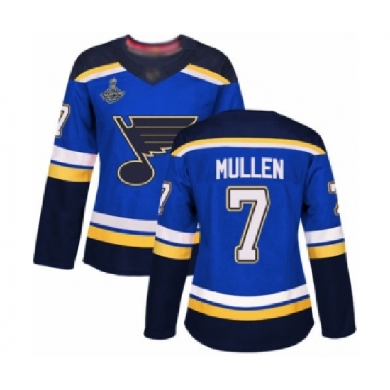 Women's St. Louis Blues #7 Joe Mullen Authentic Royal Blue Home 2019 Stanley Cup Champions Hockey Jersey