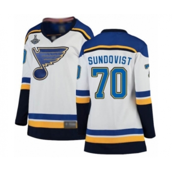 Women's St. Louis Blues #70 Oskar Sundqvist Fanatics Branded White Away Breakaway 2019 Stanley Cup Champions Hockey Jersey