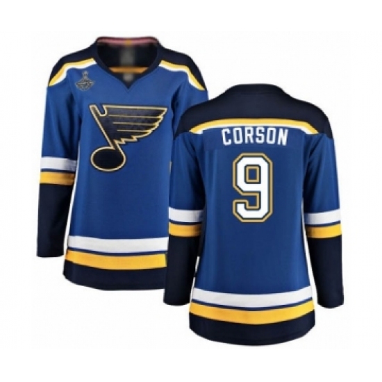Women's St. Louis Blues #9 Shayne Corson Authentic Royal Blue Home 2019 Stanley Cup Champions Hockey Jersey