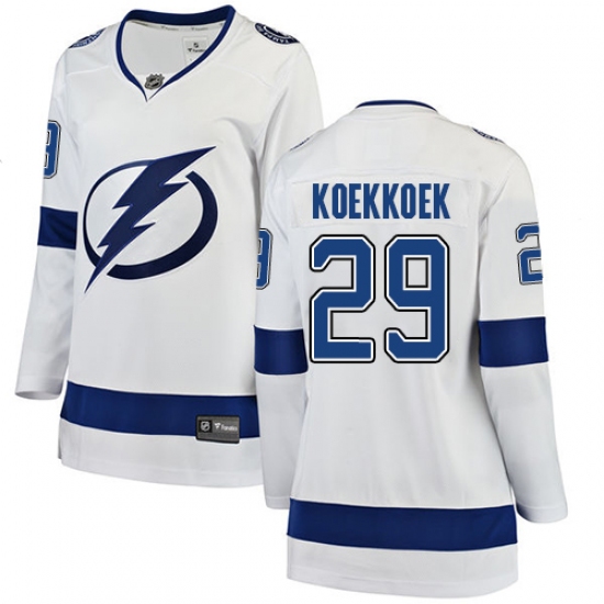 Home>NHL>Tampa Bay Lightning>Slater Koekkoek>Women's Tampa Bay Lightning #29 Slater Koekkoek Fanatics Branded White Away Breakaway NHL Jersey