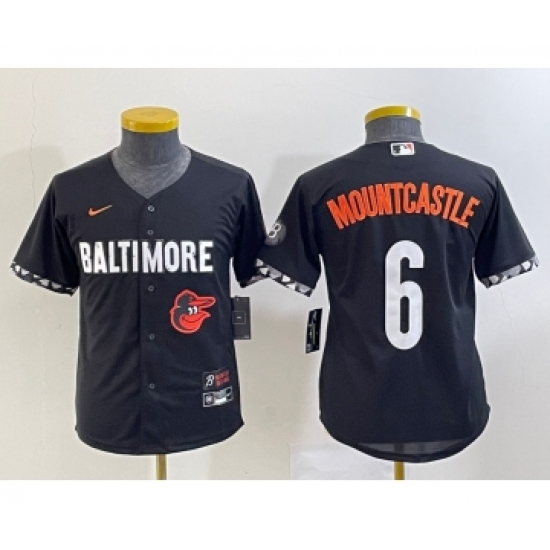 Youth Baltimore Orioles #6 Ryan Mountcastle Black 2023 City Connect Cool Base Stitched Jersey