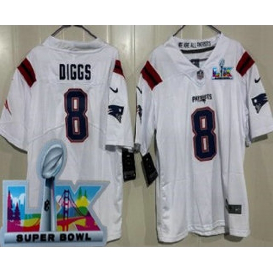 Youth New England Patriots #8 Stefon Diggs Limited White Super Bowl LX Vapor Jersey