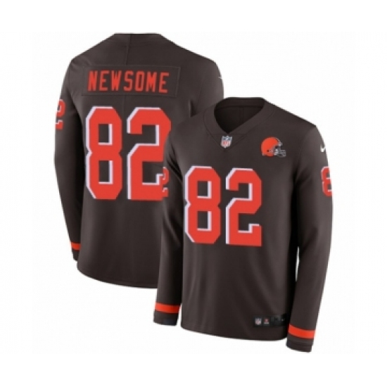 >Youth Nike Cleveland Browns #82 Ozzie Newsome Limited Brown Therma Long Sleeve NFL Jersey