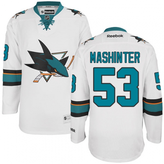 Home>NHL>San Jose Sharks>Brandon Mashinter>Youth Reebok San Jose Sharks #53 Brandon Mashinter Authentic White Away NHL Jersey