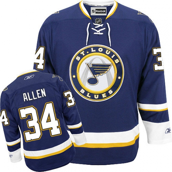Youth Reebok St. Louis Blues #34 Jake Allen Premier Navy Blue Third NHL Jersey