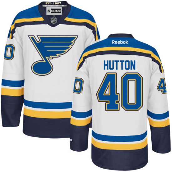 Home>NHL>St. Louis Blues>Carter Hutton>Youth Reebok St. Louis Blues #40 Carter Hutton Authentic White Away NHL Jersey