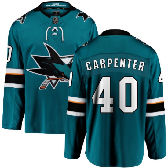 Home>NHL>San Jose Sharks>Ryan Carpenter>Youth San Jose Sharks #40 Ryan Carpenter Fanatics Branded Teal Green Home Breakaway NHL Jersey