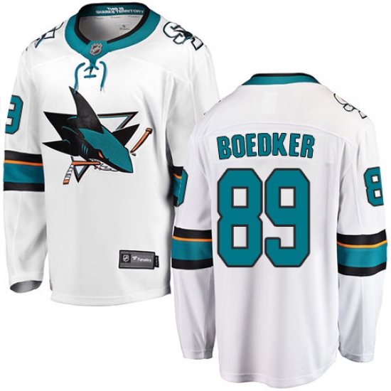 Home>NHL>San Jose Sharks>Mikkel Boedker>Youth San Jose Sharks #89 Mikkel Boedker Fanatics Branded White Away Breakaway NHL Jersey