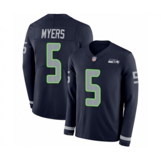 Youth Seattle Seahawks #5 Jason Myers Limited Navy Blue Therma Long Sleeve Football Jersey
