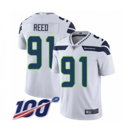 >Youth Seattle Seahawks #91 Jarran Reed White Vapor Untouchable Limited Player 100th Season Football Jersey