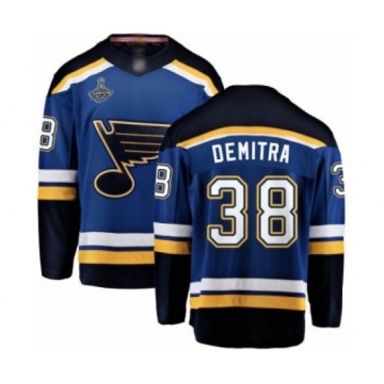 >Youth St. Louis Blues #38 Pavol Demitra Fanatics Branded Royal Blue Home Breakaway 2019 Stanley Cup Champions Hockey Jersey