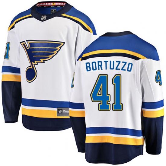 Home>NHL>St. Louis Blues>Robert Bortuzzo>Youth St. Louis Blues #41 Robert Bortuzzo Fanatics Branded White Away Breakaway NHL Jersey