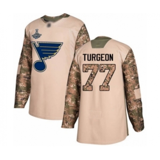 >Youth St. Louis Blues #77 Pierre Turgeon Authentic Camo Veterans Day Practice 2019 Stanley Cup Champions Hockey Jersey