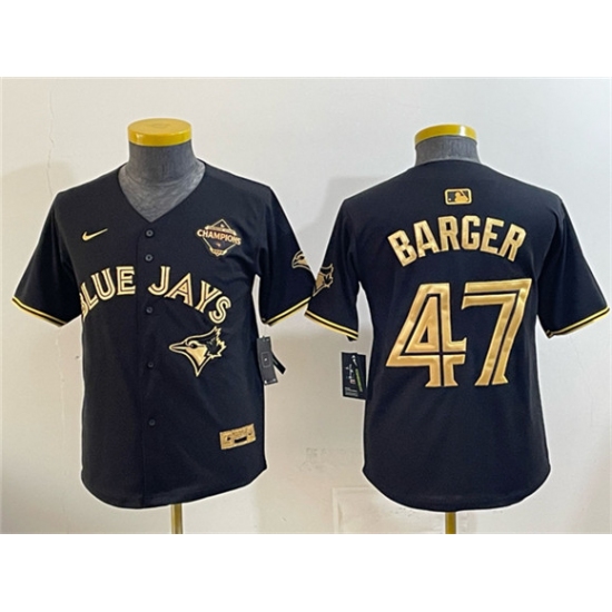 >Youth Toronto Blue Jays #47 Addison Barger Black Gold 2025 American League Champions Limited Stitched Jersey